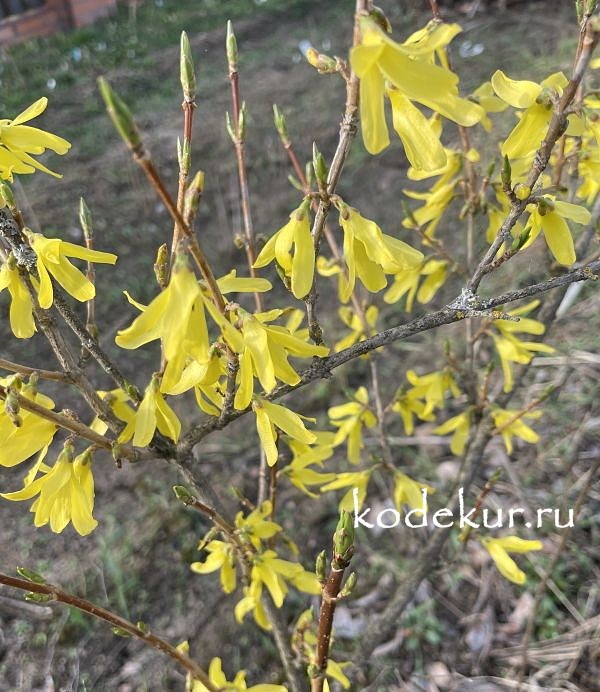 Самая зимостойкая из всех форзиций. Листопадный кустарник высотой 1,5-2,0 м с раскидистыми ветвями. Листья ярко-зелёные. Осенняя окраска листьев — тёмно-пурпурная с оранжевым тоном, что делает ее нарядной и красочной в осенний период. Цветки ярко-жёлтые, распускаются раньше листьев, одиночные, размером до 2 см. Зацветает раньше других видов форзиций в апреле в течение 10-17 дней.