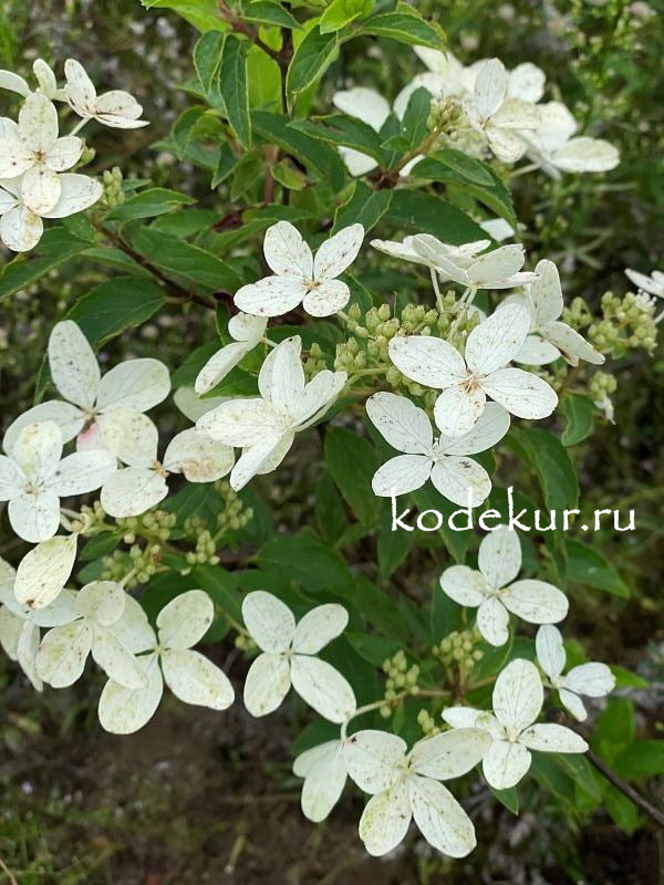 Эксклюзив! Новинка! Очень необычный и эффектный сорт! Куст компактный, высотой 1,7-2,0 м. Стерильные цветки огромные, диаметром 8-10 см, состоят из четырёх узких длинных, напоминающих пропеллер или порхающих бабочек. Окраска цветков белая, к концу сезона неравномерно розовеет. Цветёт в июле-сентябре. Код 1006028 1 200 - 1 700 руб.