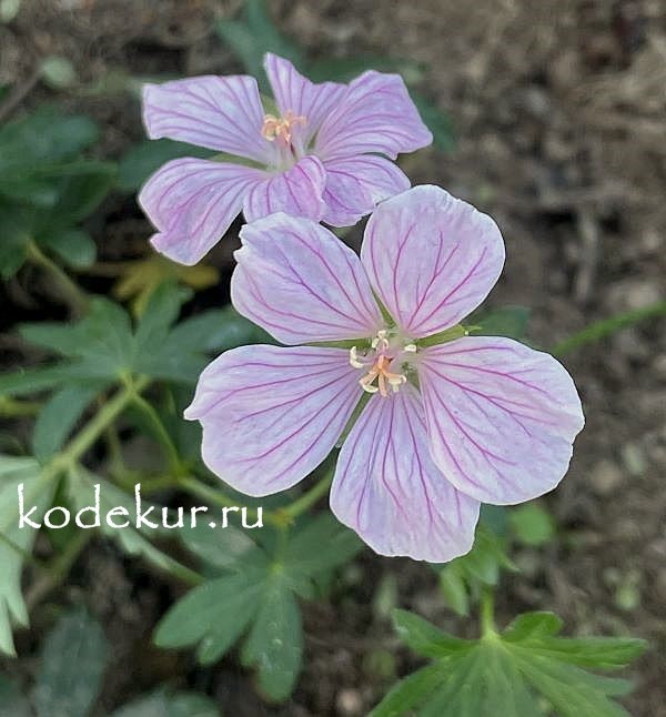 Компактный сорт высотой 15-20 см. Листья тёмно-зелёные, ажурные, на длинных черешках. Цветки нежно-розовые с более тёмными прожилками. Цветёт продолжительно в июне-сентябре.