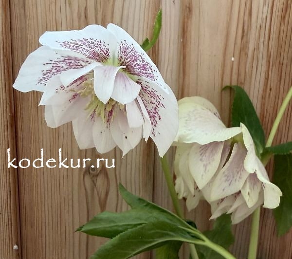 Коллекция «Magic». Высота 30-40 см. Листья кожистые глянцевые. Цветки махровые белые с крапчатым рисунком. Цветёт обильно в апреле-мае.