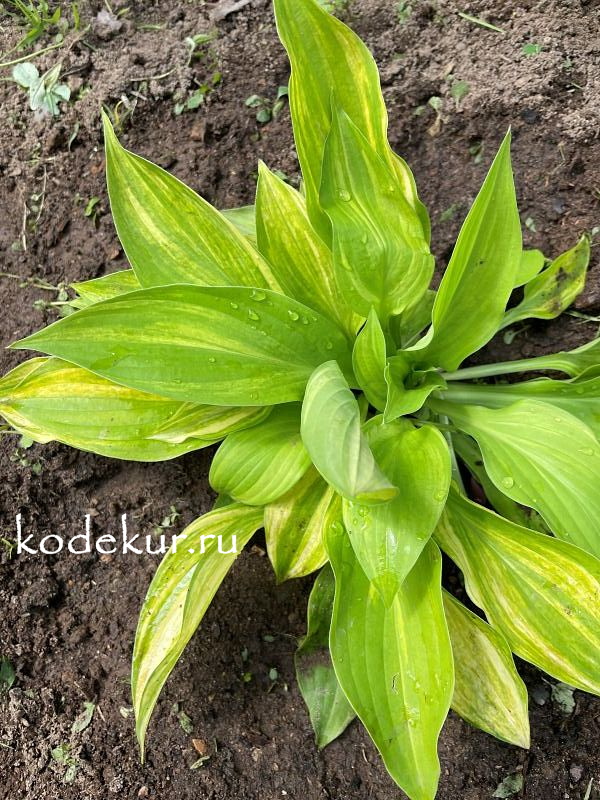 Хоста группы L. Winterberry Farms/J. Anderson. Streaked (страйк). "Снежная Буря". Спорт сорта Sum and Substance, 2003 г. Довольно устойчивая. Очень крупная хоста. Листья блестящие, плотные, жёлто-зелёные с многочисленными жёлтыми и белыми полосами и штрихами. |