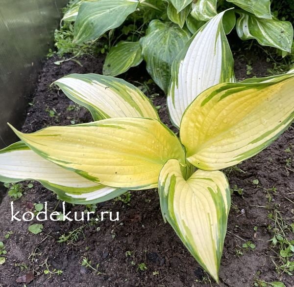 Хоста группы МL. Asami/Paul Aden, 1986 г. Спорт хосты Montana. Переводится, как "На сцене". Лист жёлтый с зелёным нерегулярным перистым краем. |