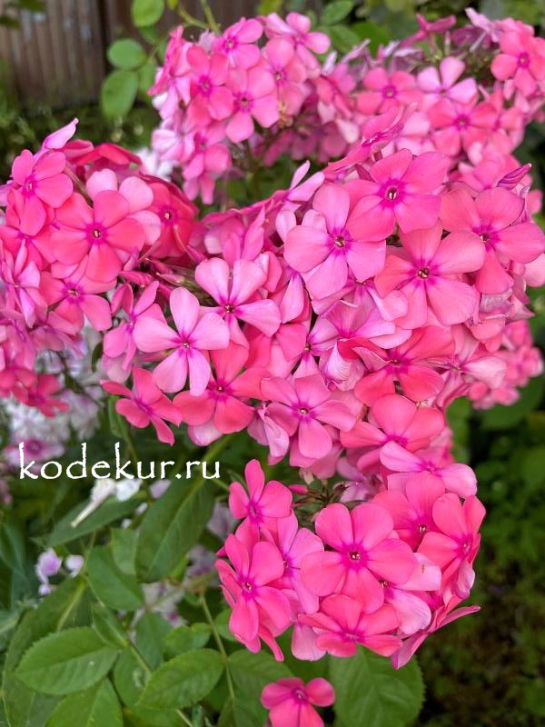 3,0-3,2/75-80/С. Константинова Н.Ю., 2016 г. Цветок колесовидно-звёздчатой формы, лепестки разделены, насыщенно карминно-розовый с малиновым глазком и такими же тенями. Соцветие большое, округло-коническое, ветвистое, красиво сложенное, плотное. Куст прочный, мощный, быстро разрастается. Цветение обильное и продолжительное. |