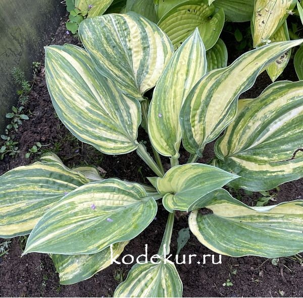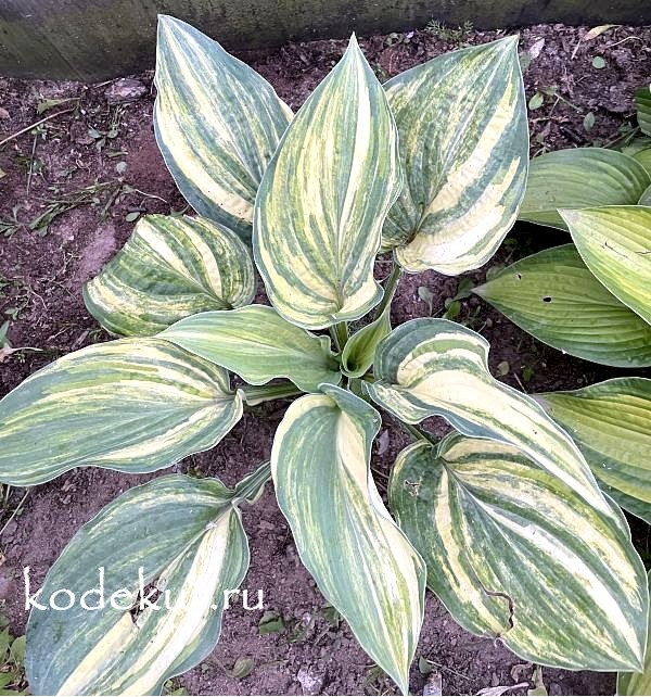 Хоста группы M. B. Silvers , 2007 год . Streaked (страйк). "Храбрая попытка". Листья овальные, слегка жатые, сине-зеленые с кремово-желтыми зонами и всполохами. |